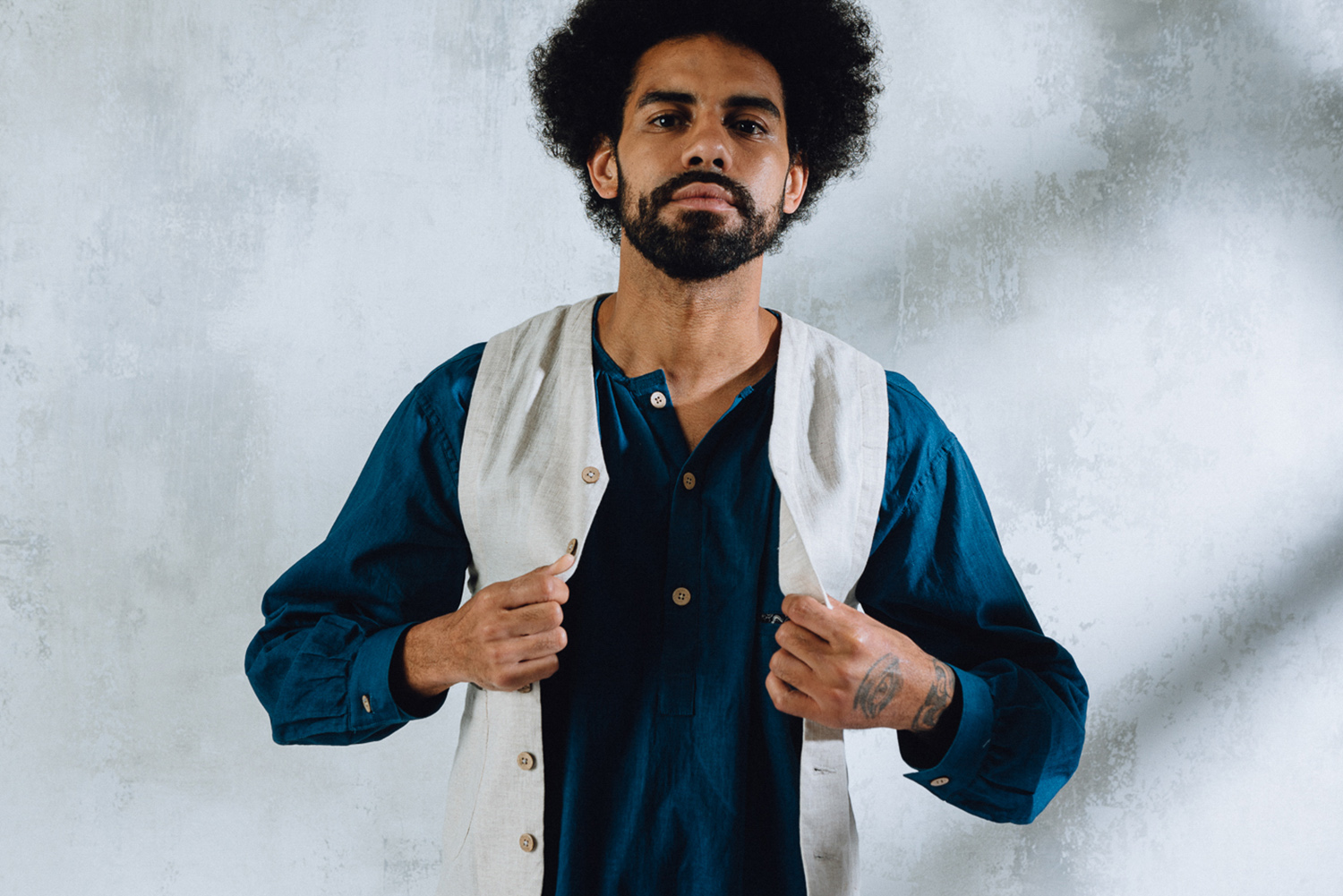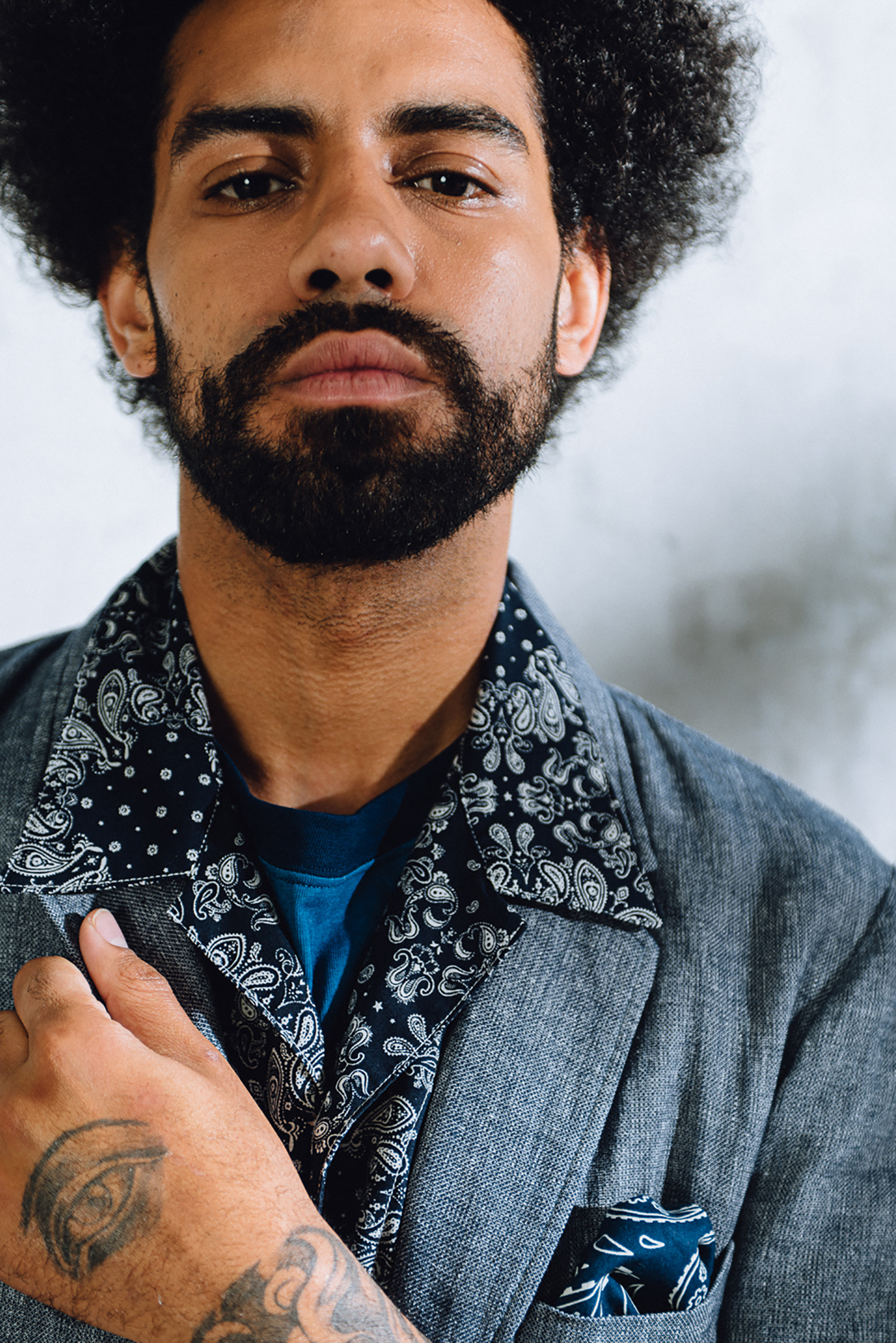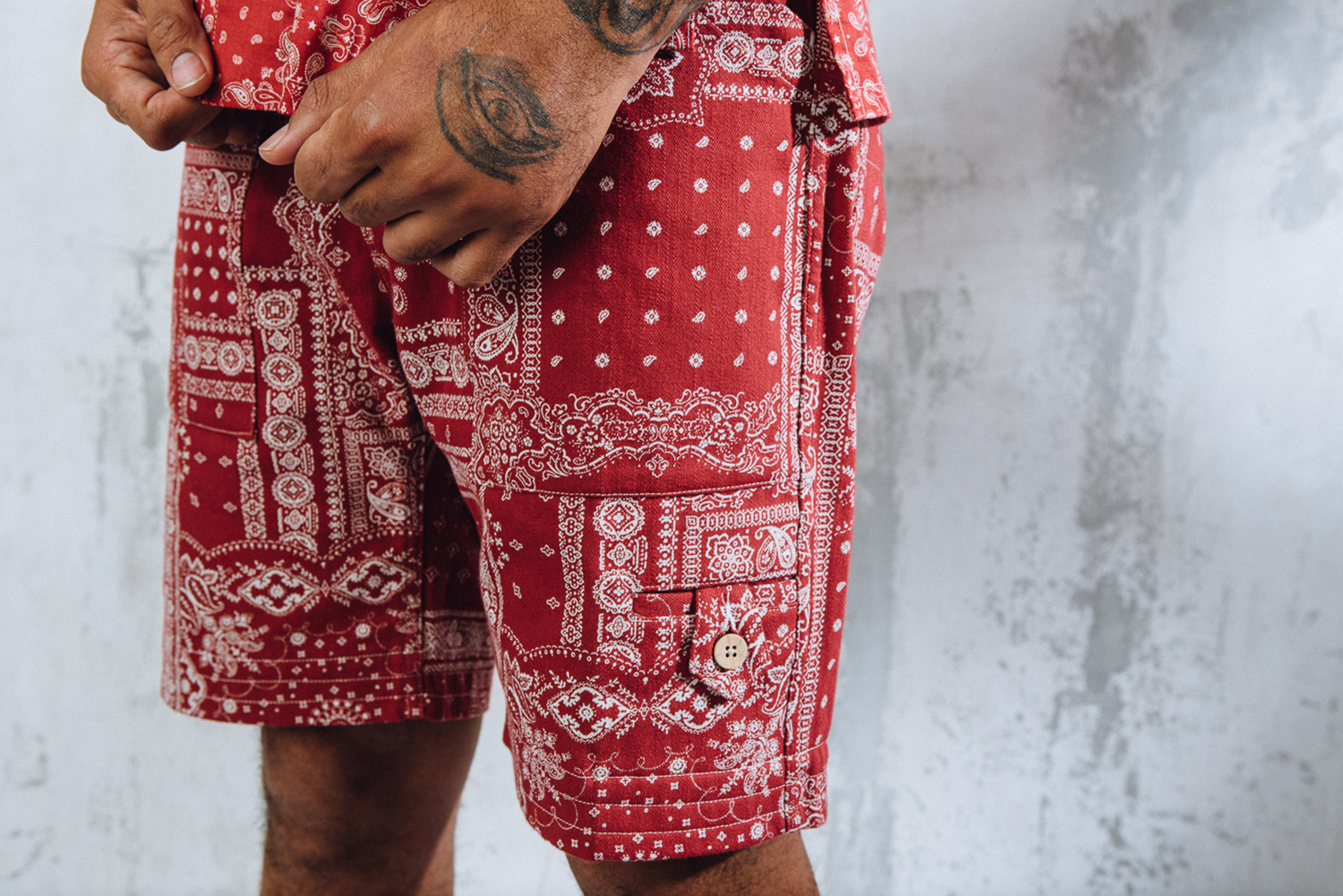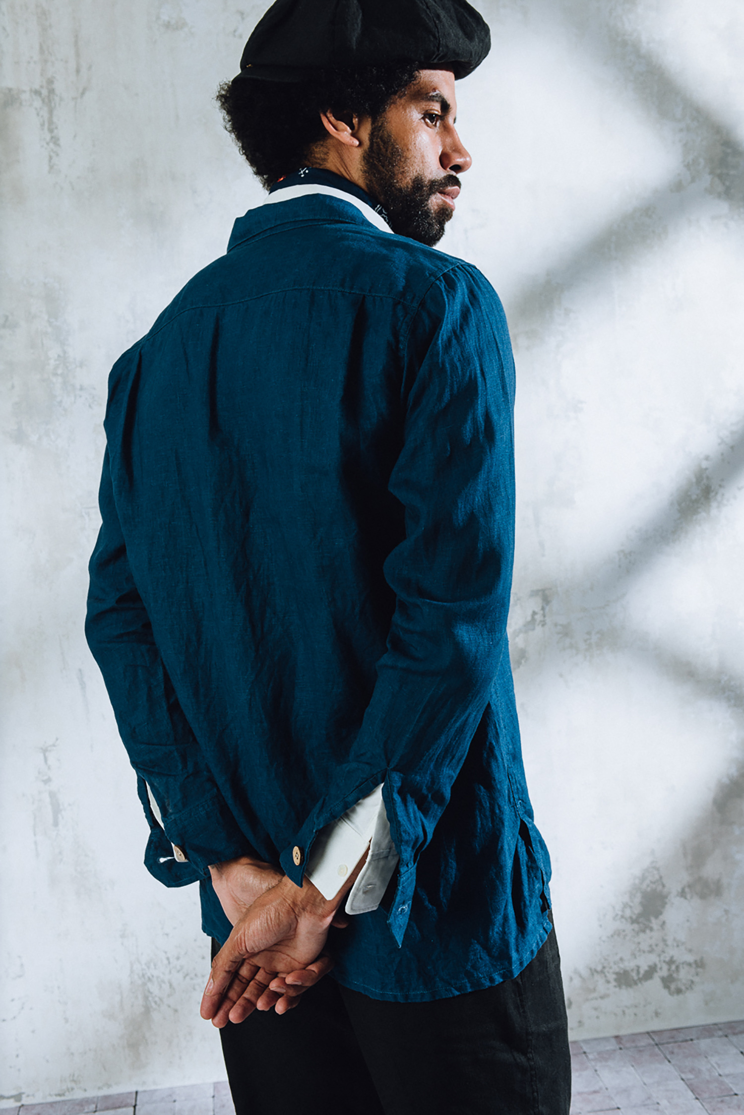 除了意大利面料,本季亦选用顶级法国亚麻、美国 Supima 棉,在台湾北部山区施以天然蓝染;此外并在日本制做全新配件商品,以「蓝染」和「柿渋染」两种天然染制技艺完成南方风情的 bandana 方巾,上有 SYNDRO 团队绘制的「WRENCH PAISLEY」工具变形虫花纹。 SYNDRO 希望搜集世界各地的优秀原料、与台湾本地职人工艺联名,为市场带来丰富的优质选择。