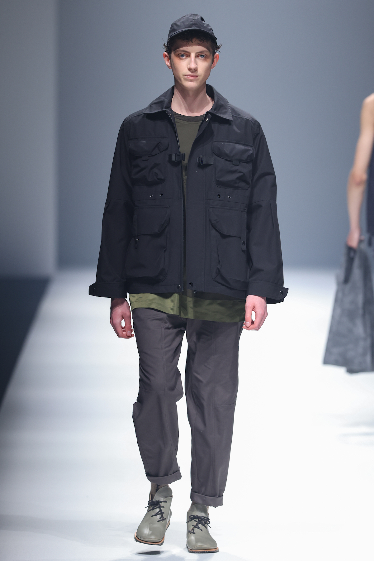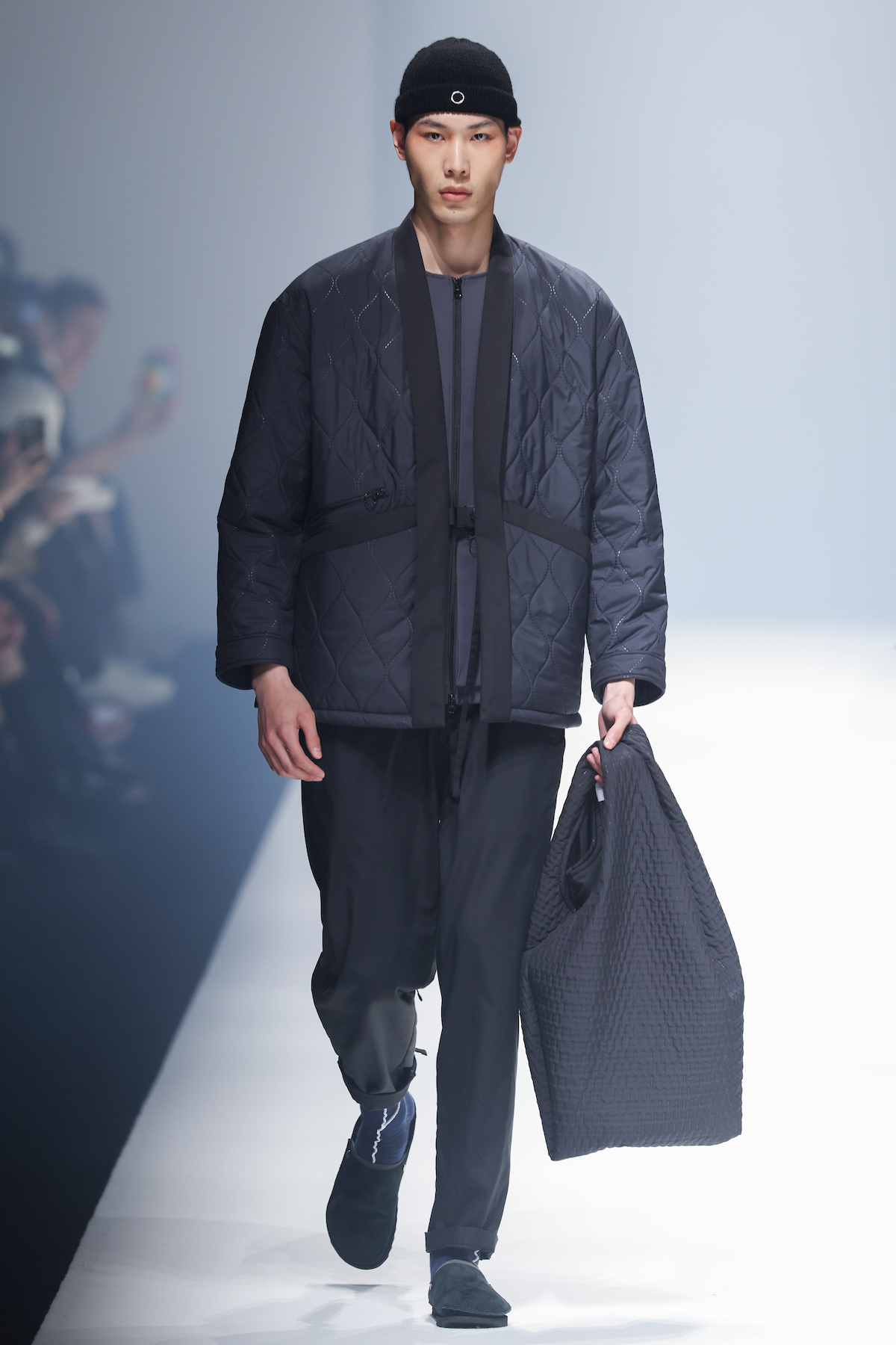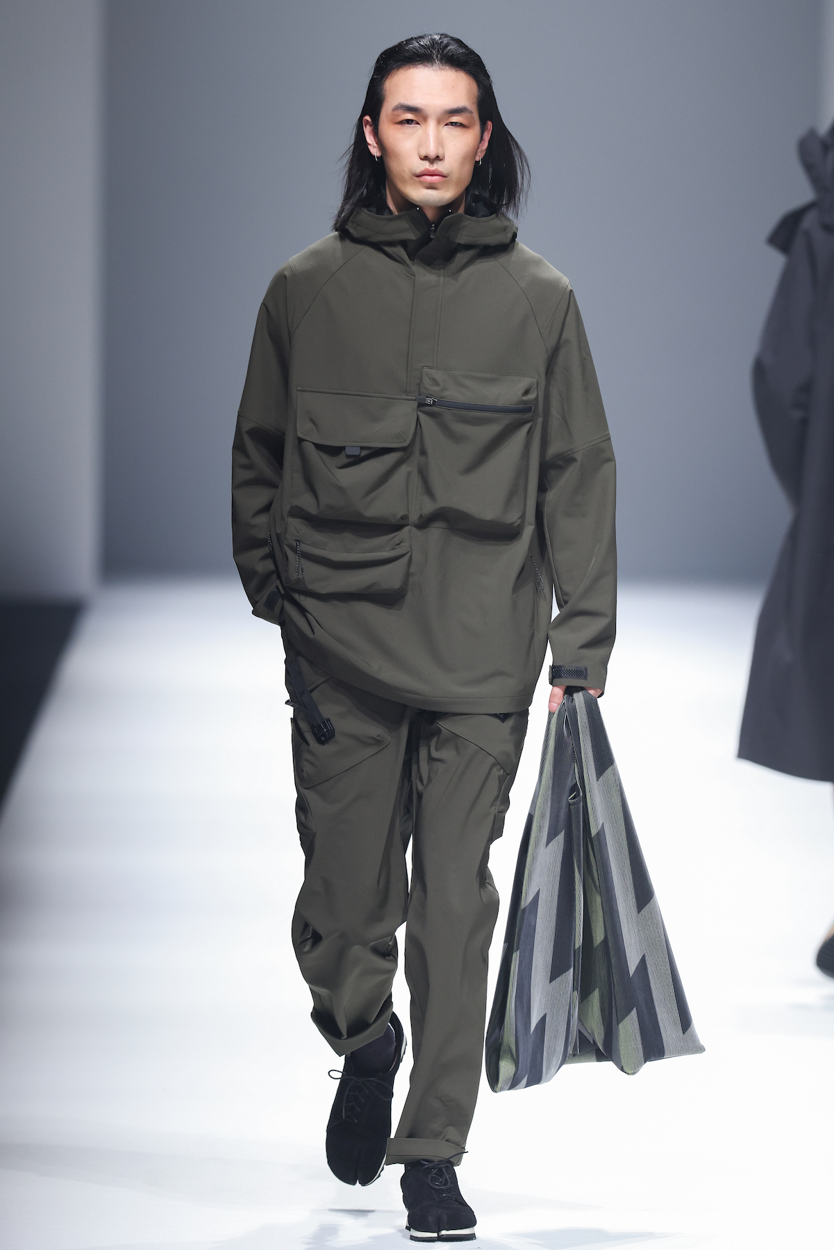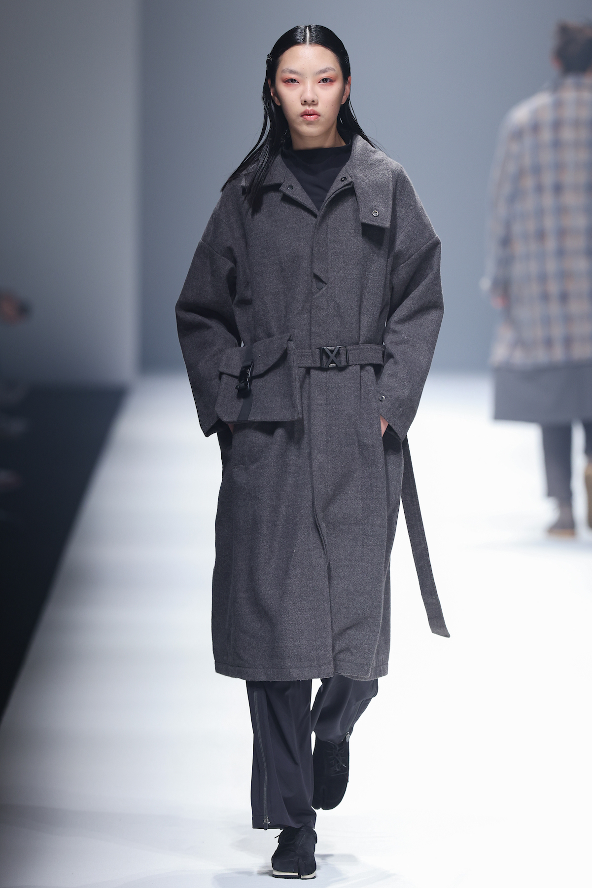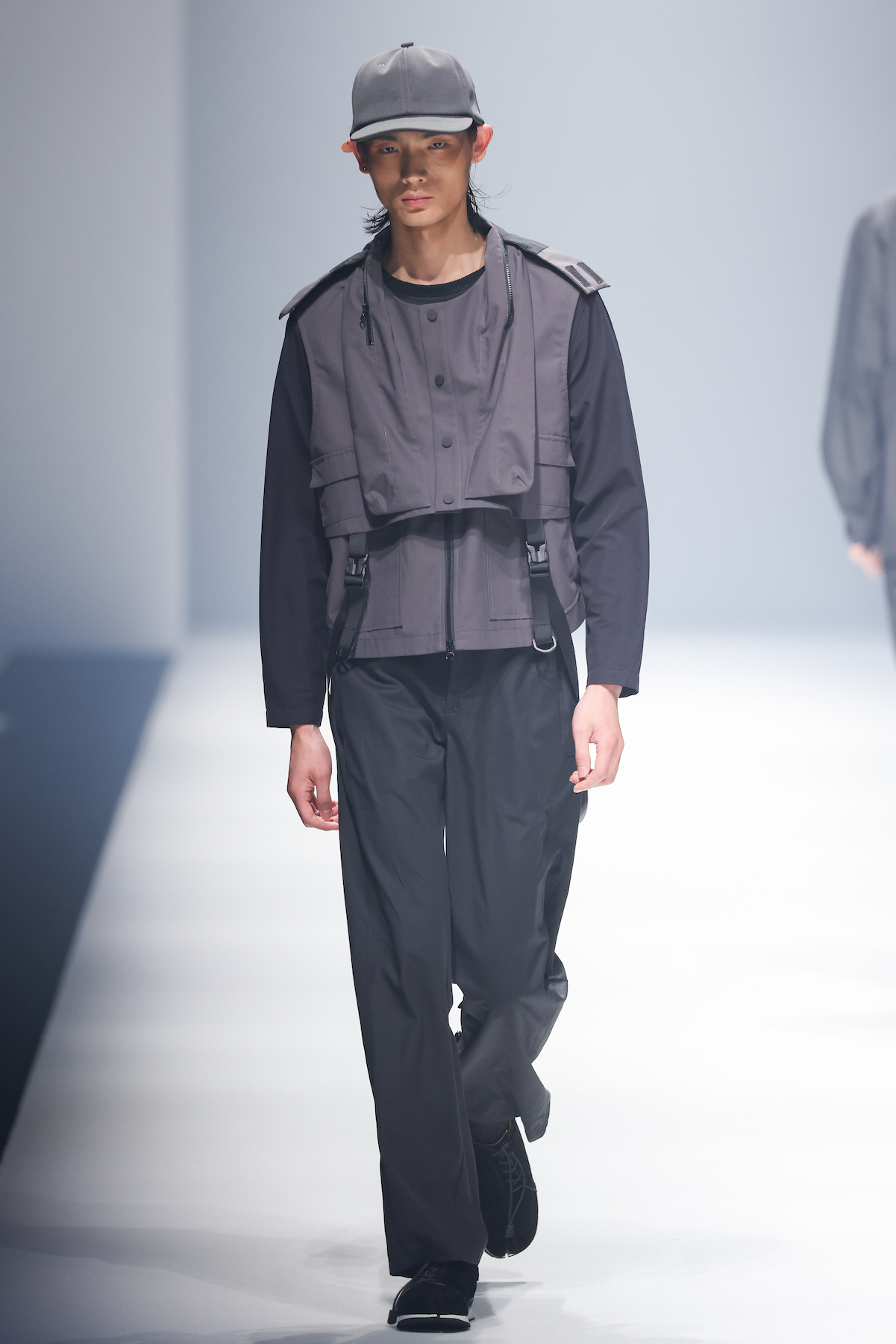 oqLiq 本季同时进入纽约时装周和伦敦时装周日程,以分集方式在两大时装周发布不同的场景和不同角色故事线,并以全 3D 虚拟秀做为电影预告片的伏笔呈现 oqLiq 宇宙观,而完整的 2021 秋冬系列此番终于在上海时装周正式公开。本季的设计理念延续春夏主题「风调雨顺」,品牌通常以同一主题贯彻春夏秋冬两季,以不同的季度完整上下集呈现,本季以订制回收材质制成蚀刻调性毛料,搭配 3XDRY® 及 CORDURA® 等科技面料构织出 oqLiq 的全新秋冬宇宙,演绎本地文化与机能布料的结合,体现东方都会机能美学。此外系列还以经典小说《封神榜》中的四大天王「剑琴伞龙」为灵感,将防「风」、机能「调」节、防「雨」和「顺」舒适的机能诉求,设计融入东方传统文化线条,考究 Vintage 军装功能,将汉字笔画廓形化作衣身剪裁,做出收纳结构及立体剪接线条。