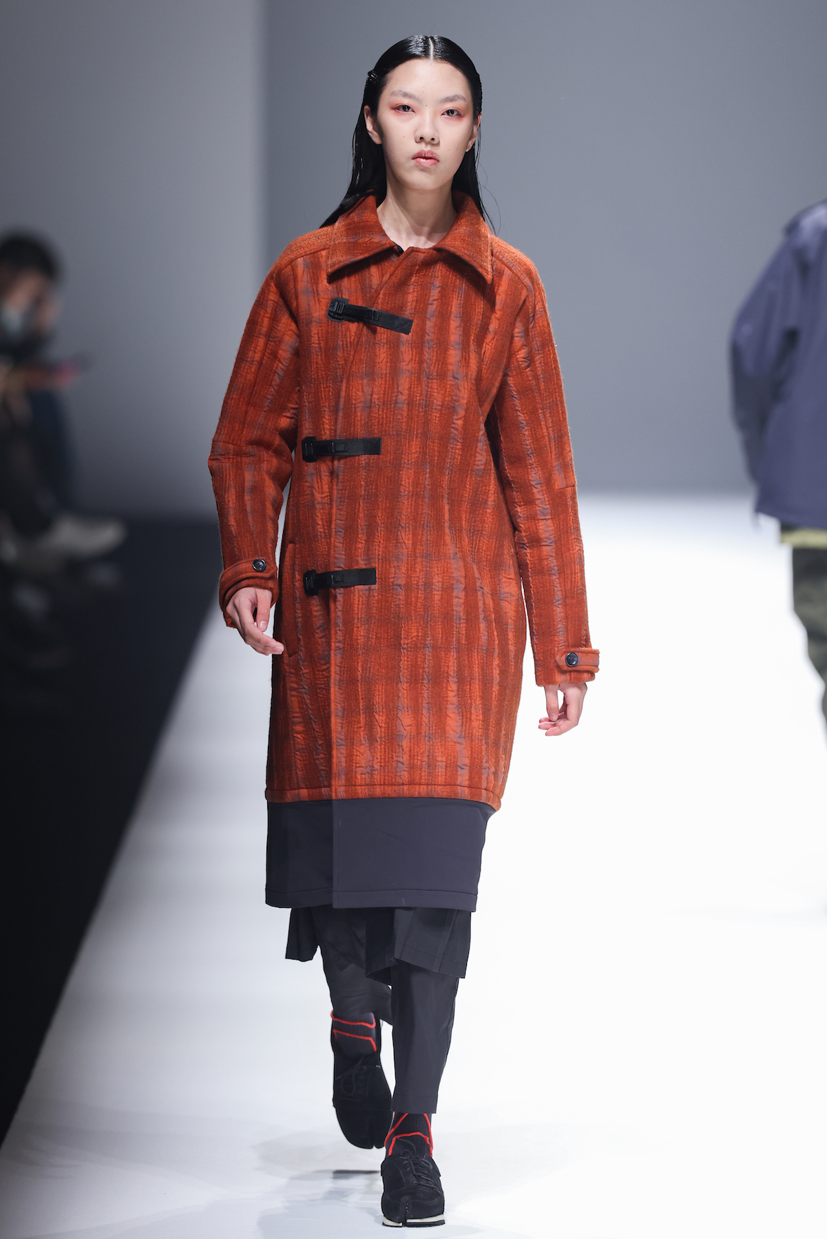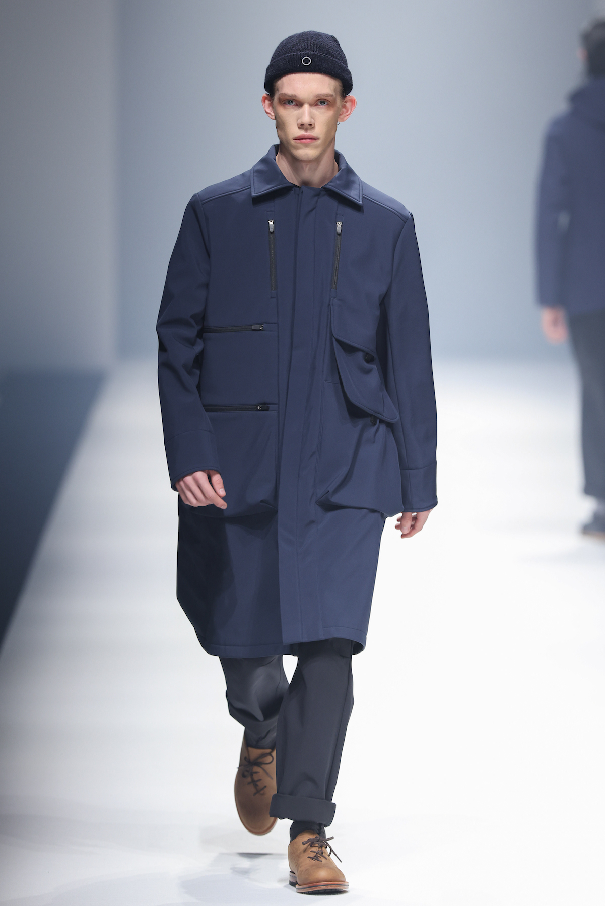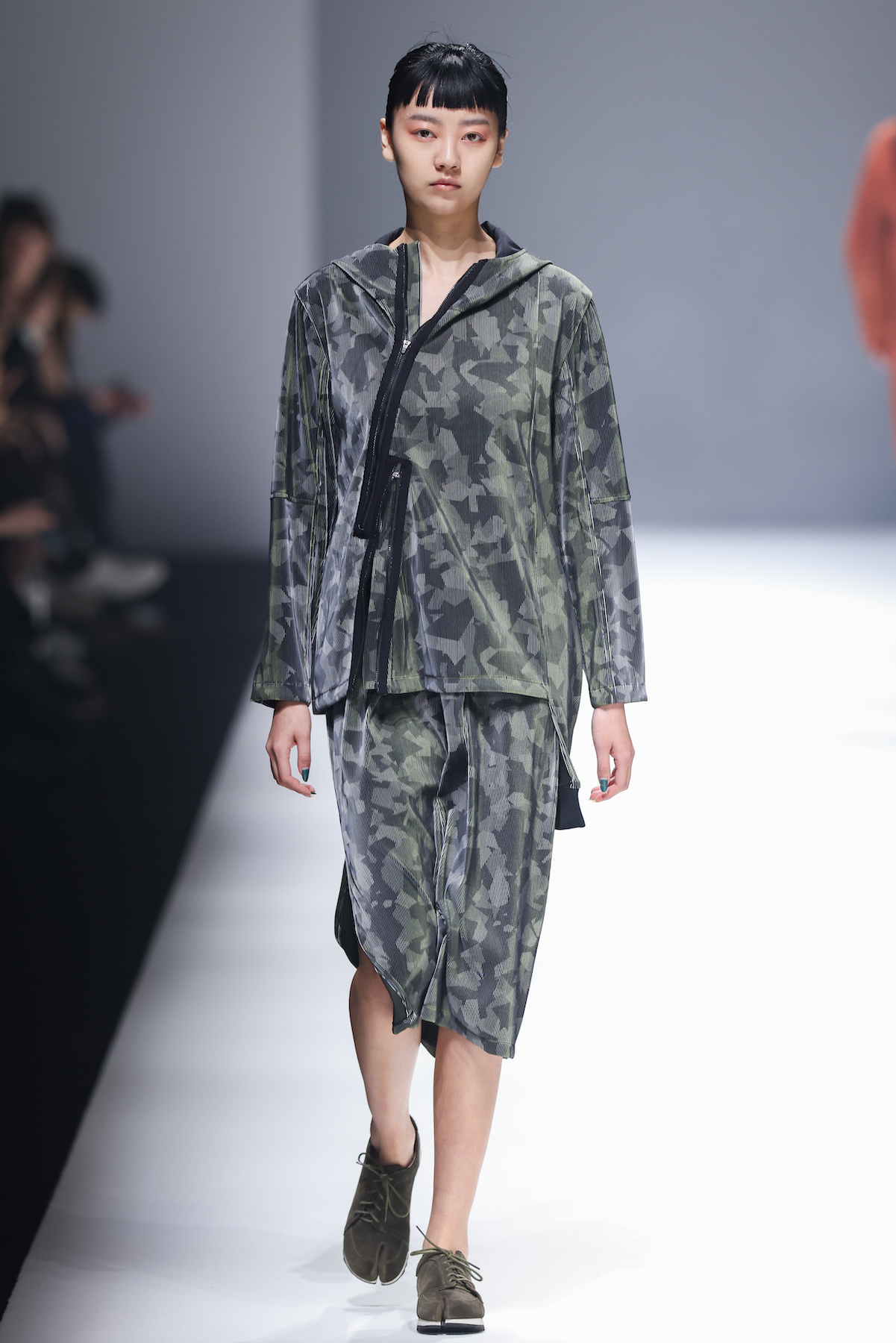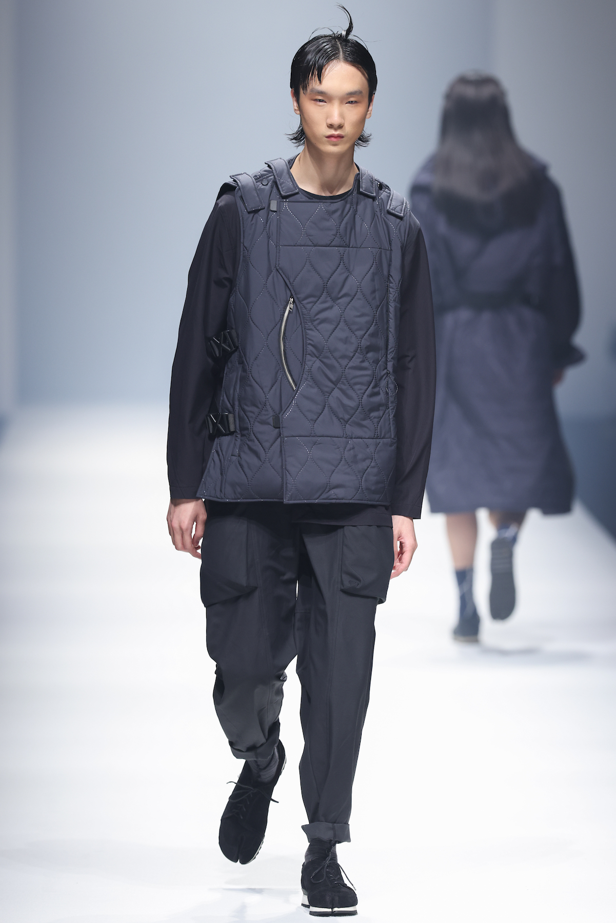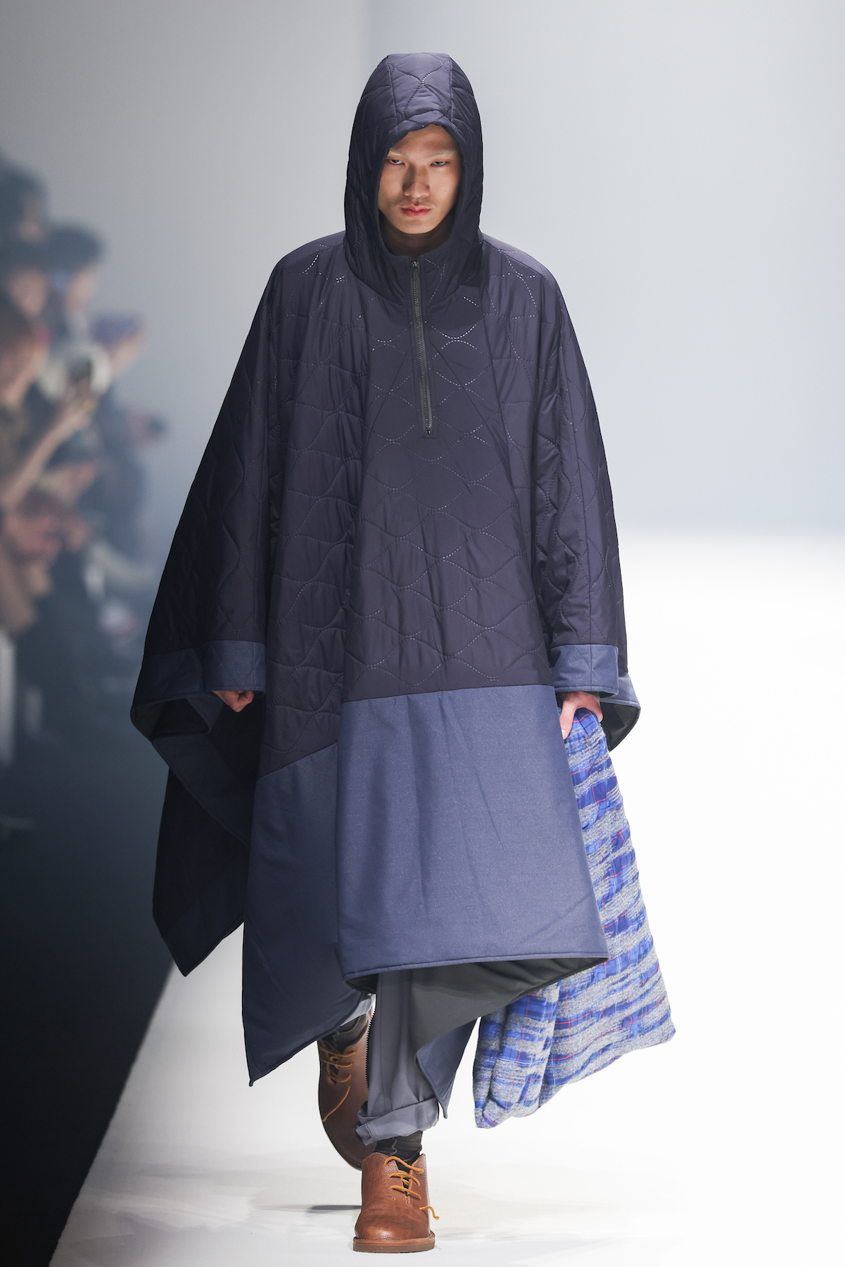 oqLiq 本季同时进入纽约时装周和伦敦时装周日程,以分集方式在两大时装周发布不同的场景和不同角色故事线,并以全 3D 虚拟秀做为电影预告片的伏笔呈现 oqLiq 宇宙观,而完整的 2021 秋冬系列此番终于在上海时装周正式公开。本季的设计理念延续春夏主题「风调雨顺」,品牌通常以同一主题贯彻春夏秋冬两季,以不同的季度完整上下集呈现,本季以订制回收材质制成蚀刻调性毛料,搭配 3XDRY® 及 CORDURA® 等科技面料构织出 oqLiq 的全新秋冬宇宙,演绎本地文化与机能布料的结合,体现东方都会机能美学。此外系列还以经典小说《封神榜》中的四大天王「剑琴伞龙」为灵感,将防「风」、机能「调」节、防「雨」和「顺」舒适的机能诉求,设计融入东方传统文化线条,考究 Vintage 军装功能,将汉字笔画廓形化作衣身剪裁,做出收纳结构及立体剪接线条。