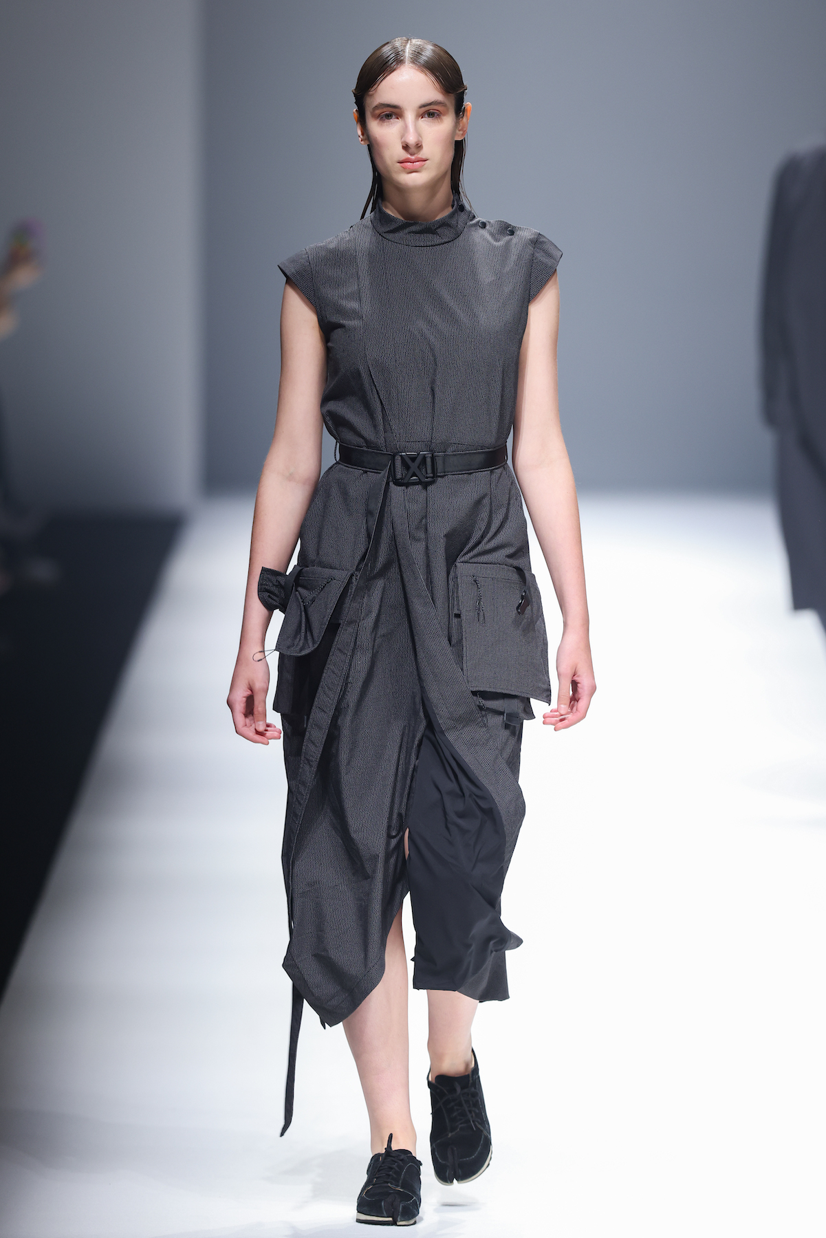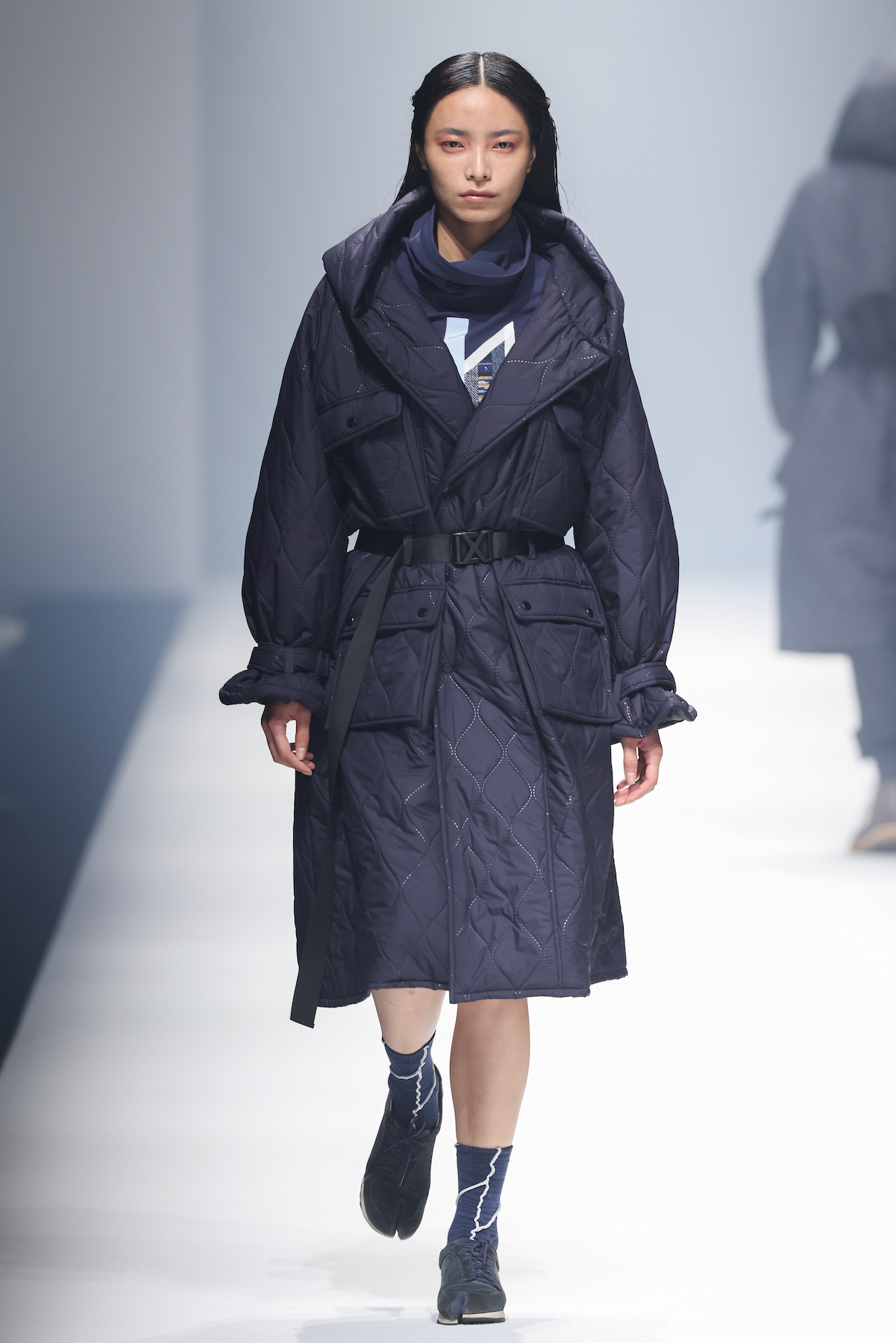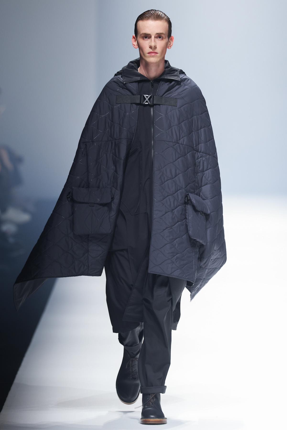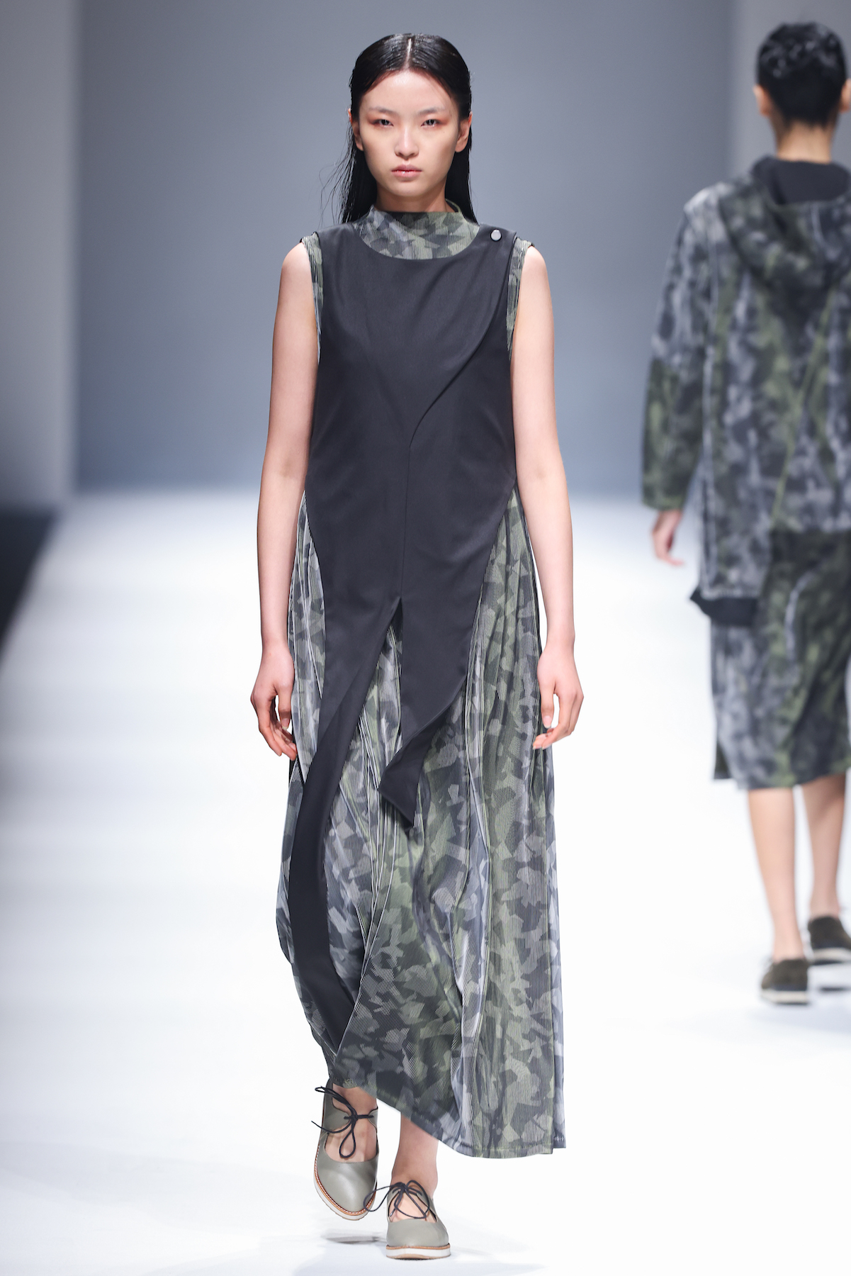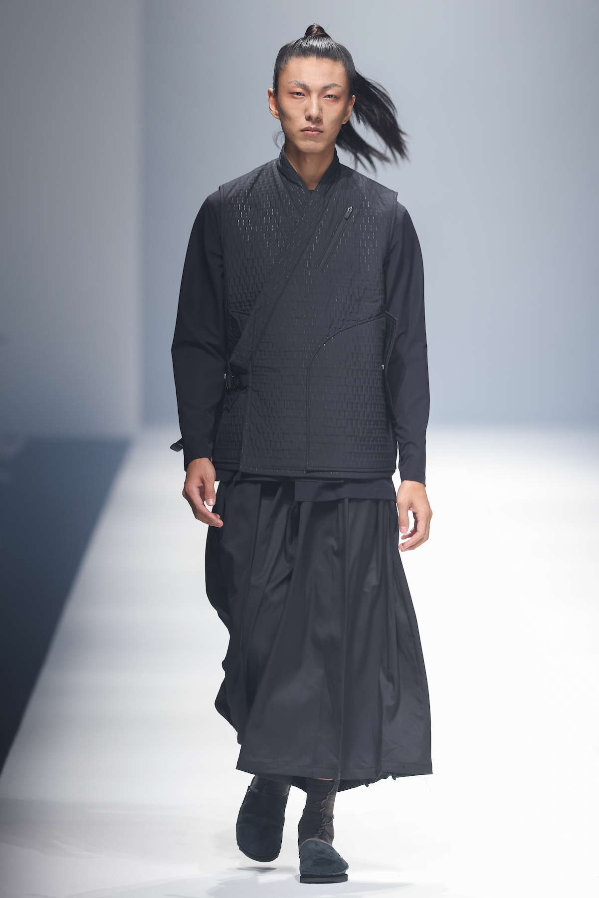 oqLiq 本季同时进入纽约时装周和伦敦时装周日程,以分集方式在两大时装周发布不同的场景和不同角色故事线,并以全 3D 虚拟秀做为电影预告片的伏笔呈现 oqLiq 宇宙观,而完整的 2021 秋冬系列此番终于在上海时装周正式公开。本季的设计理念延续春夏主题「风调雨顺」,品牌通常以同一主题贯彻春夏秋冬两季,以不同的季度完整上下集呈现,本季以订制回收材质制成蚀刻调性毛料,搭配 3XDRY® 及 CORDURA® 等科技面料构织出 oqLiq 的全新秋冬宇宙,演绎本地文化与机能布料的结合,体现东方都会机能美学。此外系列还以经典小说《封神榜》中的四大天王「剑琴伞龙」为灵感,将防「风」、机能「调」节、防「雨」和「顺」舒适的机能诉求,设计融入东方传统文化线条,考究 Vintage 军装功能,将汉字笔画廓形化作衣身剪裁,做出收纳结构及立体剪接线条。