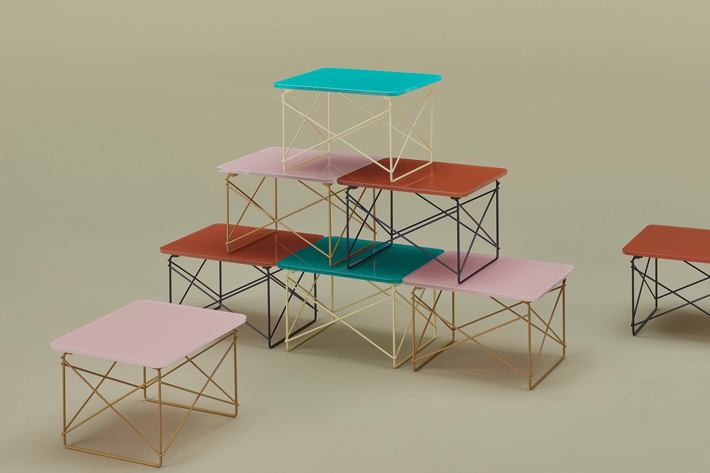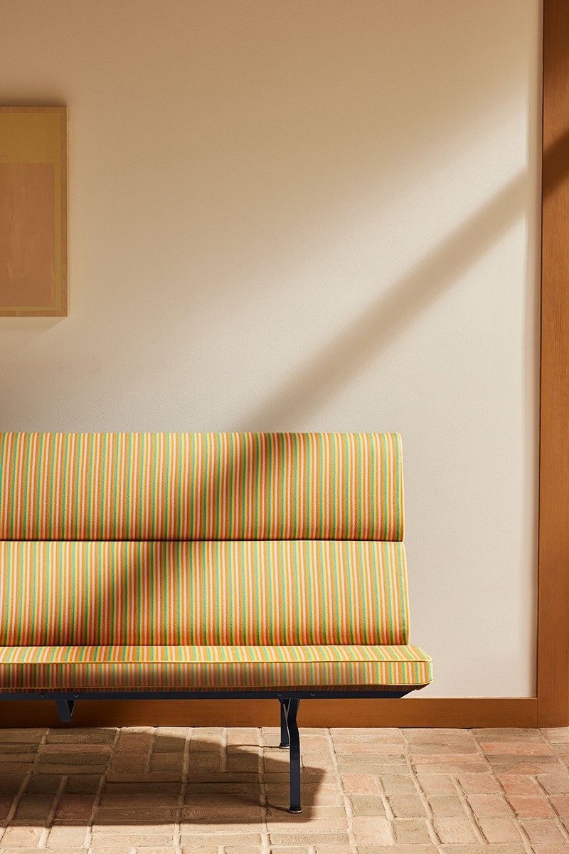 1 of 7此外,标志性的「Hang-It-All」衣架、「Wire Base Low Table」、「Universal Base Round Table」等产品也选用玻璃材质代替原本的木材,最后分别汲取翠绿色,以及 1955 年 Alexander Girard 的「Jacob’s Coat」纺织品色彩,呈现「Eames Molded Plywood Chair」和特别版「Eames Sofa Compact」。 1 of 5