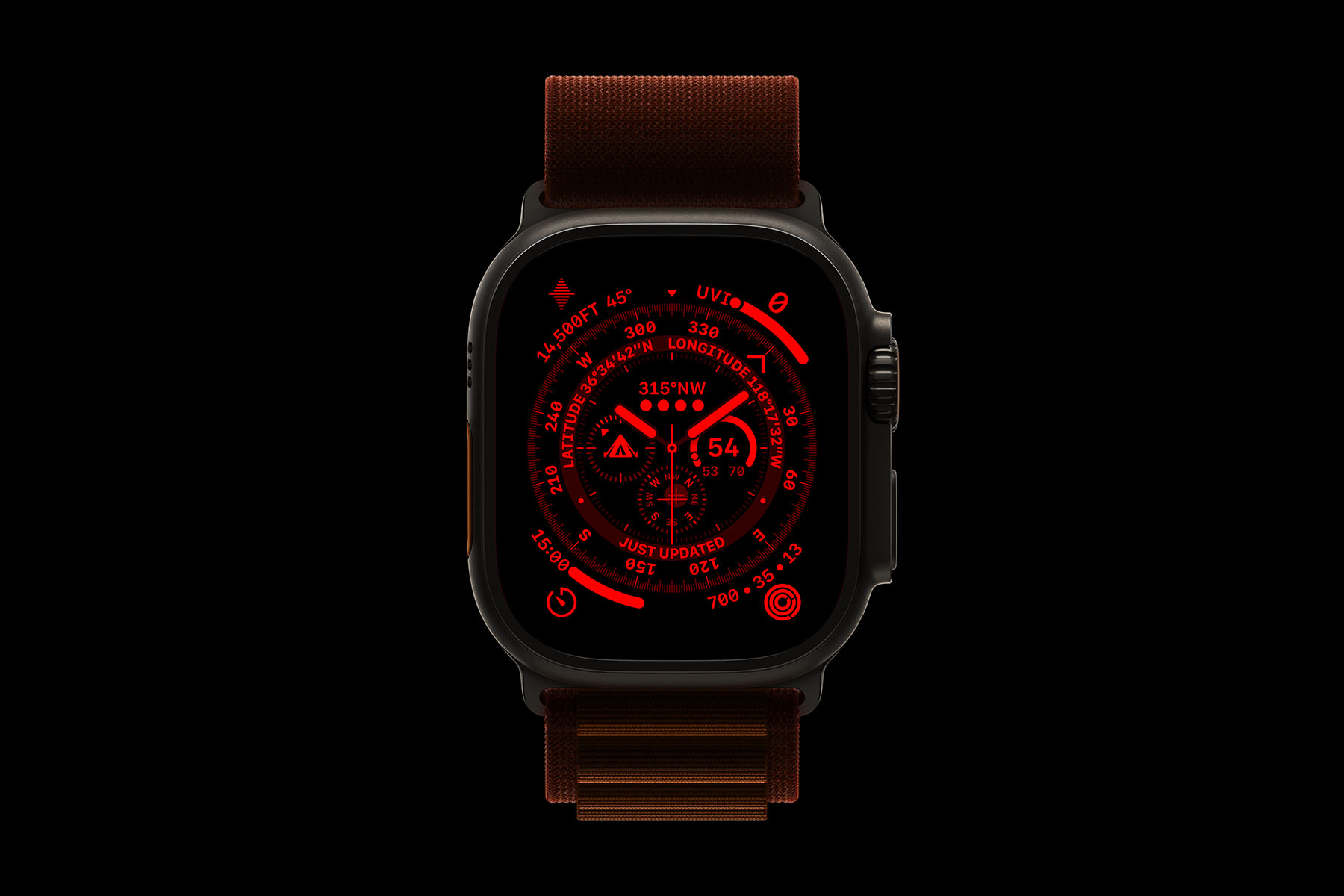 Apple Watch Ultra 已通过军用装备及坚固型装备制造商常用的 MIL-STD 810H 相关规范认证。测试范围包括低压 (海拔高度)、高温、低温、温度冲击;液体、雨水、湿气、淹浸、沙及灰尘污染;冻/融、冰/冻雨、冲击、震动等。为了针对夜间情境最佳化,使用「寻路者」表面时,旋转数码表冠可将介面变成红色,提升在黑暗中的可视性。Apple Watch Ultra 在设计时将水上运动纳入考察,包括风筝冲浪及宽板滑水等极限运动,并可使用全新的 Oceanic+ app 进行深达 40 公尺的休闲水肺潜水。为了支援这类水下冒险,Apple Watch Ultra 已通过 WR100 认证。