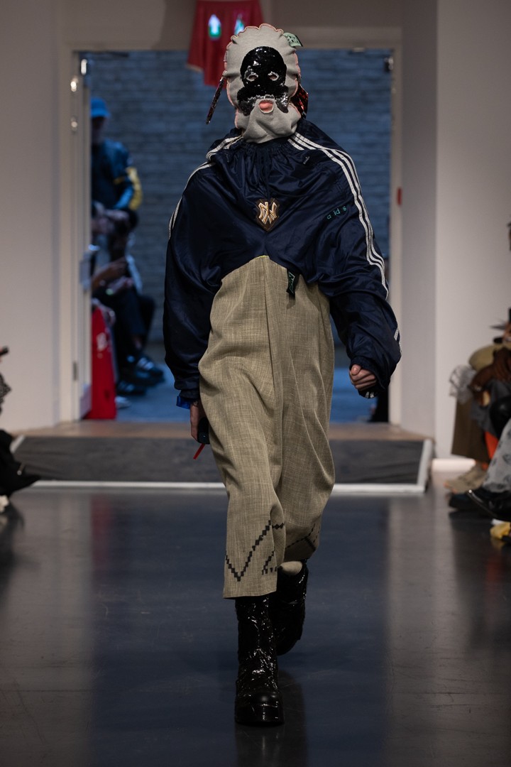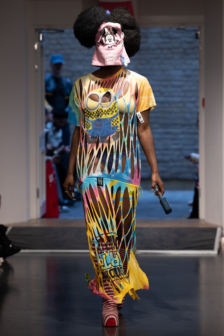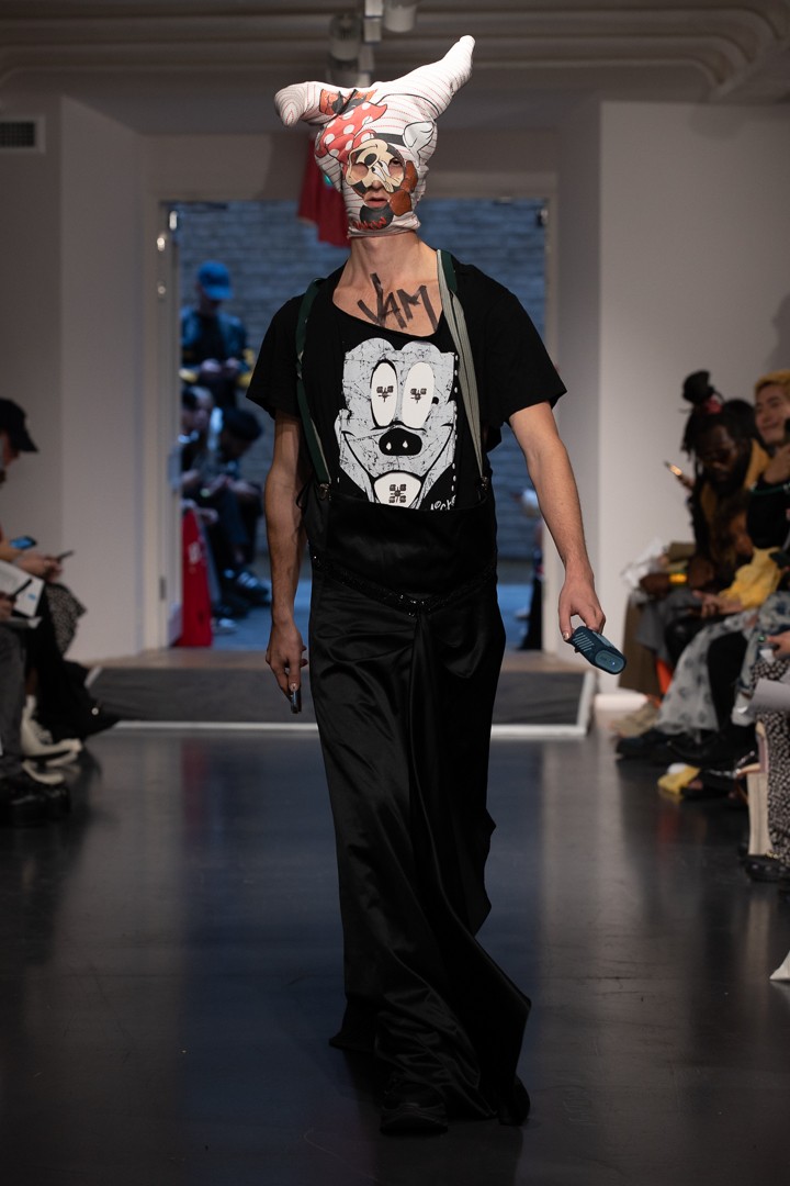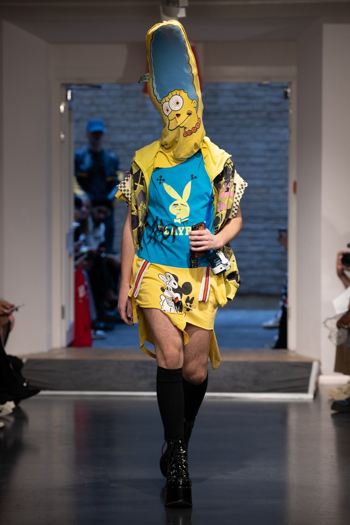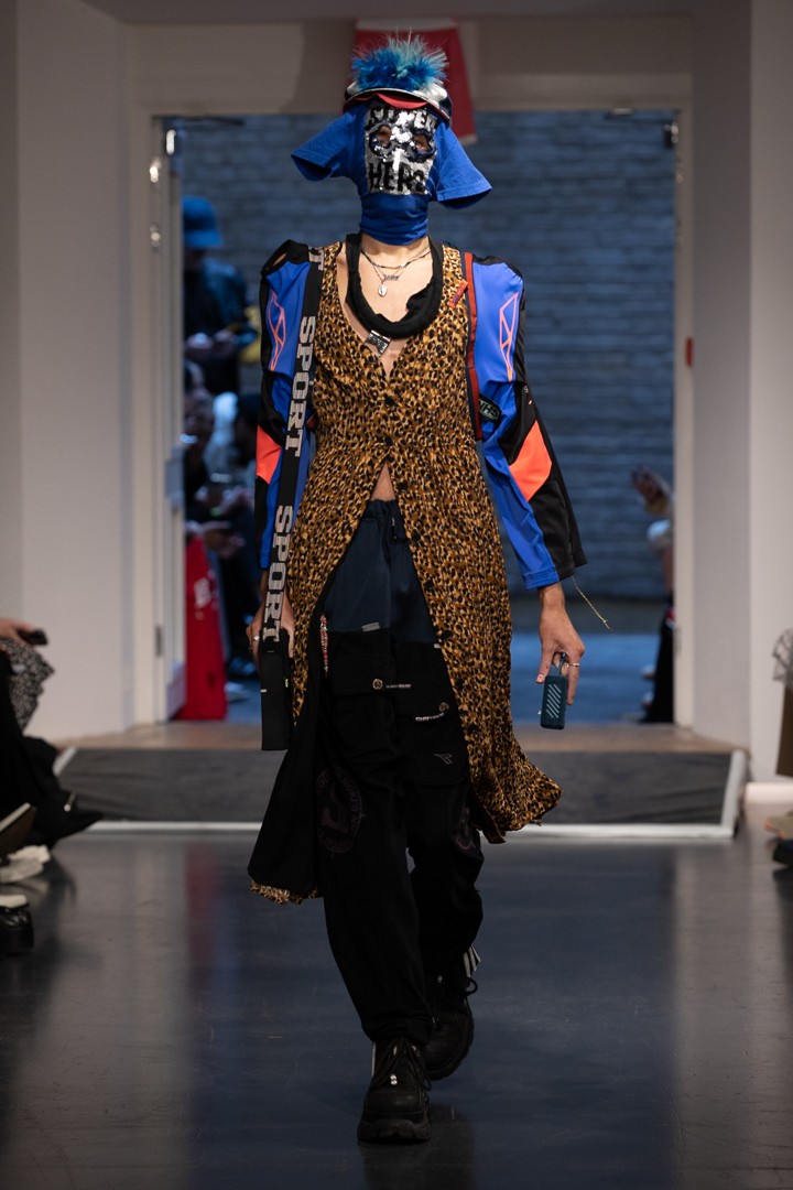 本季度不仅贯彻从回收废料中挑选素材的手法,更采用颠覆时装传统的外观传递叛逆信息,追求残破美学之余,也发挥创意大玩 Bootleg,将 adidas、PUMA、Playboy 等品牌,以及《The Simpsons/辛普森家庭》、《Star Wars/星际大战》、Minions、Mickey Mouse 等影视人物,融入有违常理且毫无限制的设计,却意外规距地赋予每套造型名称,像是「FACEBOOK STARTS WAR」、「KAREN WITH A K」、「MONKEY POX」、「SHREDDED MINIONS ZINE」,藉另类实验性的风格,带给观众刺激的视觉享受。