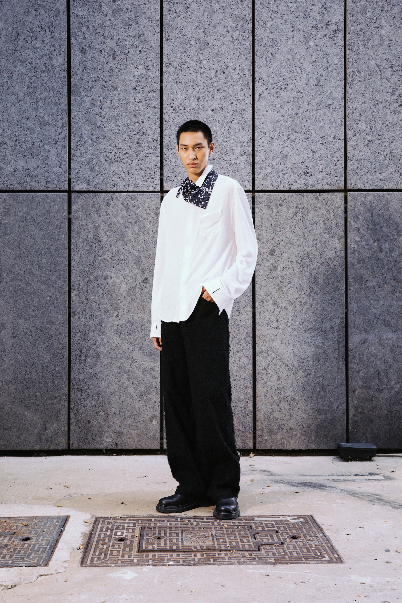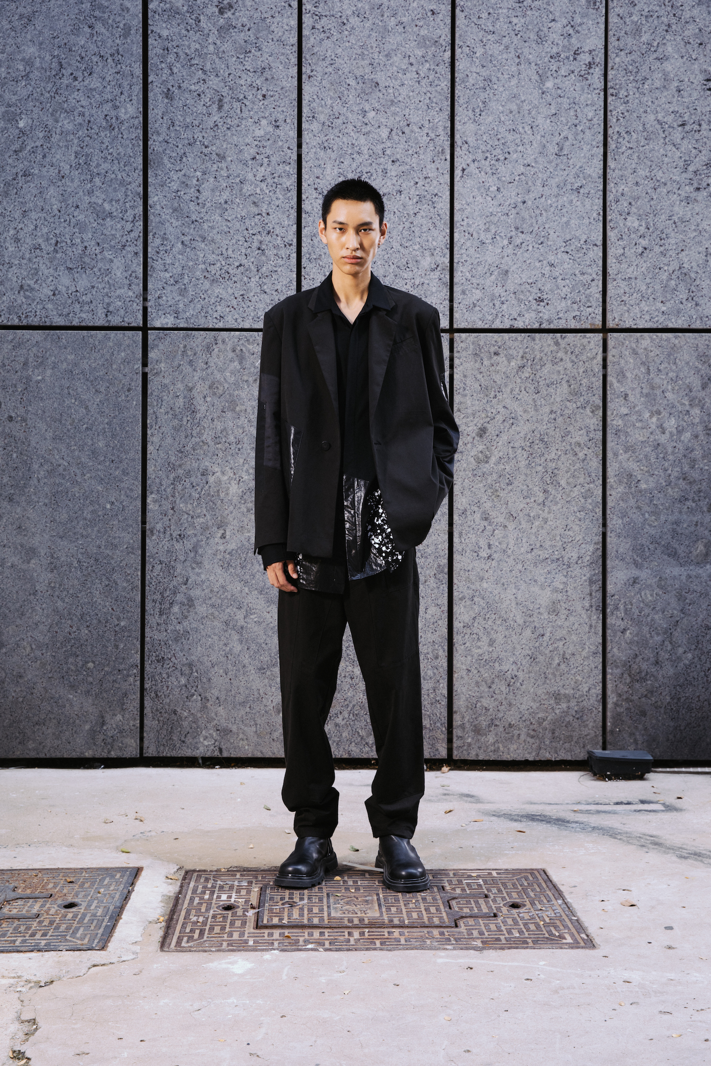 Luke 形象的内核被诠释成了手工漂刷牛仔布,油漆墨点印花,破损风格的布料拼接,可拆卸印花丝巾,镂空夹克等等细节融入到系列当中。相比往季的系列,本季充满了不同元素之间的对抗性,大量从未被使用过的休闲元素,宽松廓形和新材料混入了原本严谨的设计语言当中,在冲突之中寻找克制美学的平衡。