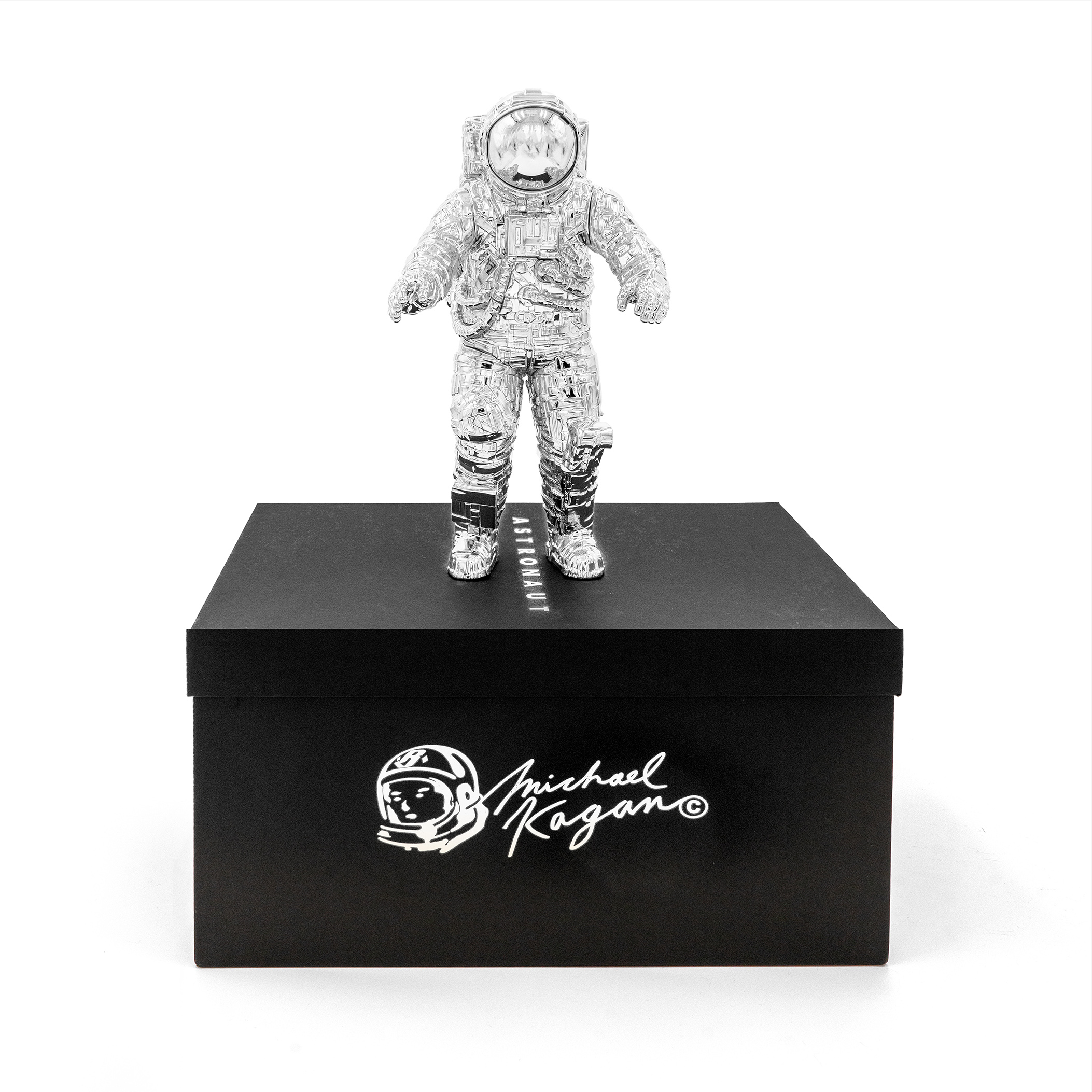「宇航员」雕塑藏品是对 Michael Kagan 与 BBC 深厚友谊的纪念。继 2019 年双方合作推出联名服装系列之后,Kagan 与 BBC 和 Pharrell 再度合作,以宇航员的形象塑造成雕像藏品将双方的合作推向另一个新的高度。「宇航员」作为 BBC 标志性的主题形象,亦是 Kagan 作品中常勾勒描绘的主体,它代表了人类对探索的好奇心和渴望。据悉这款 Michael Kagan x Billionaire Boys Club「宇航员」限量藏品重达 1 公斤,高 10.5 英寸,宽 6 英寸,发售价为 RMB ¥4,480 元。