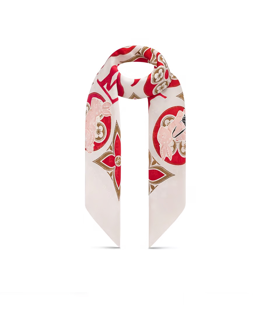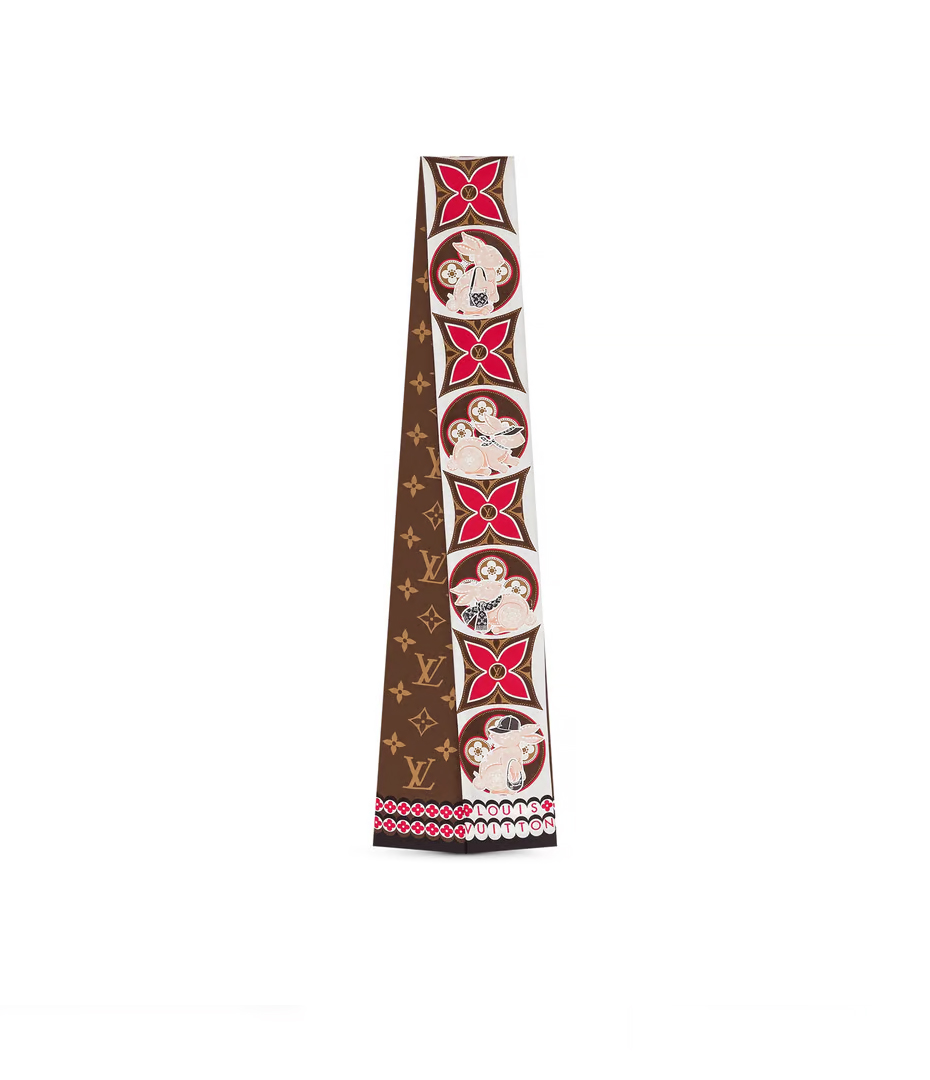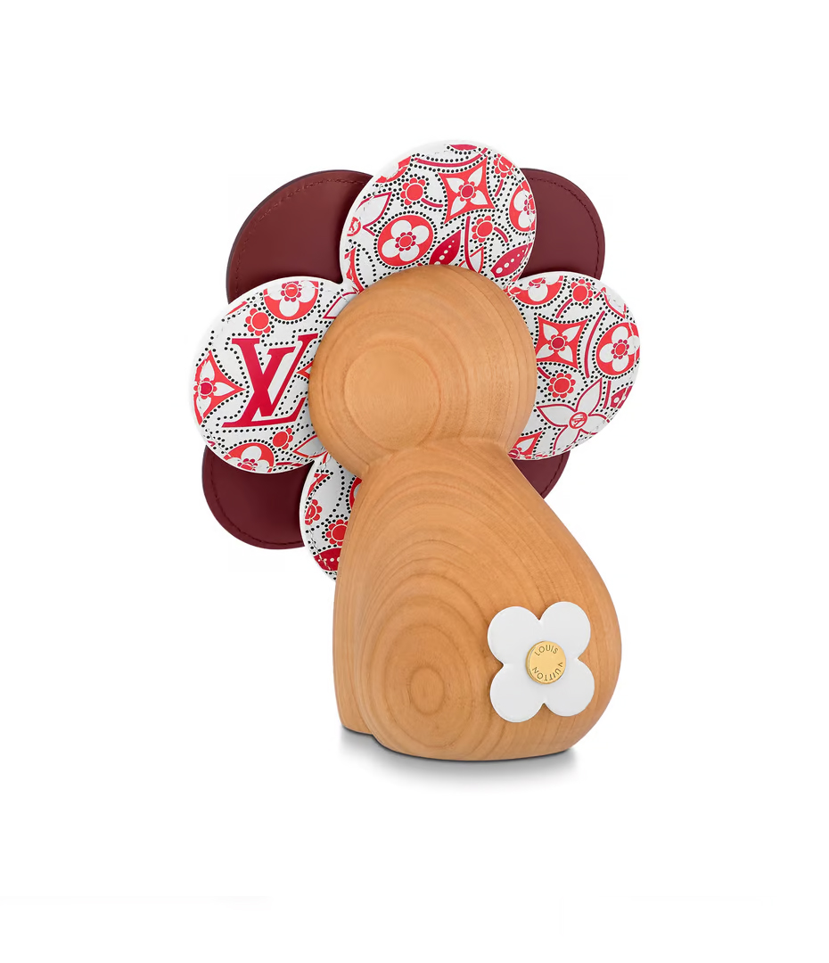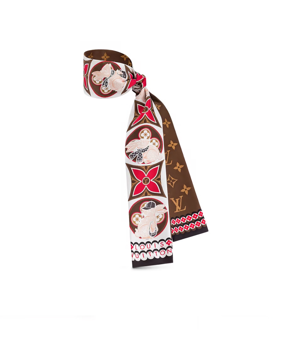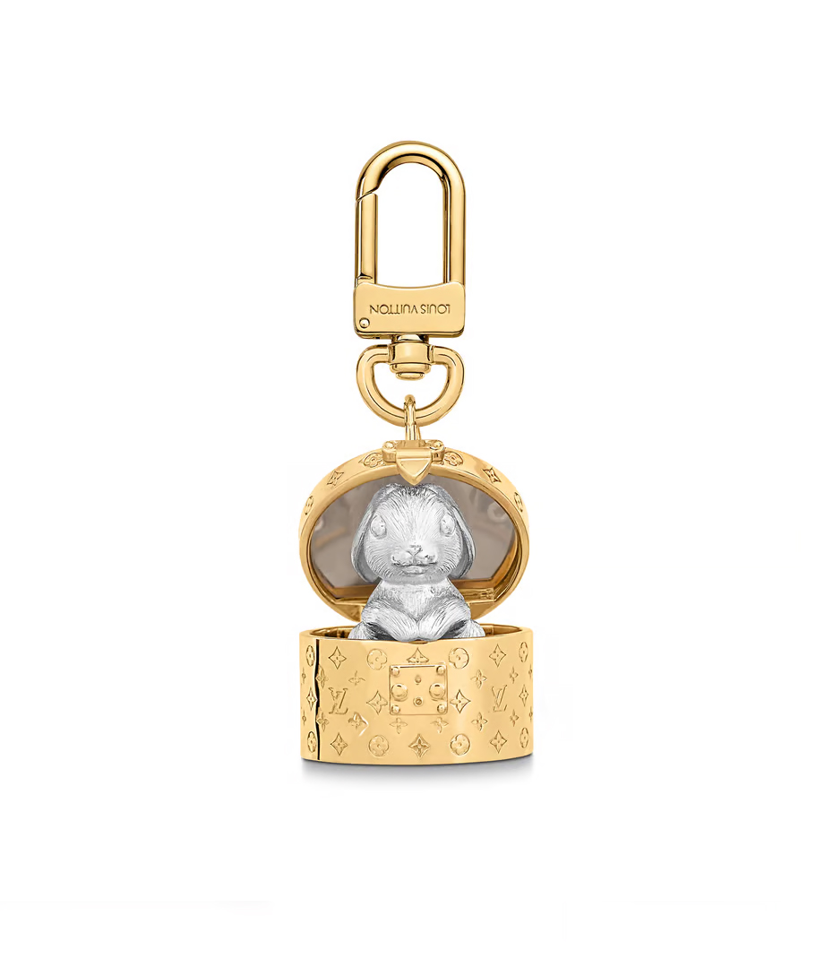 Maison 角色「Vivienne」的特别版登场, 耳朵进行了加长,鼻子也设计成兔子的样子。 四个花瓣采用实木和光滑皮革精制而成,饰有彩色 Monogram 图案, 同时将尾巴利用白色花瓣与 LOUIS VUITTON 压印饰钉相结合。兔子包挂饰和钥匙扣进行了独有设计,挂饰以从手提包「Boite Chapeau」的缩影中探出头来的银色兔子为造型,镶嵌眼睛的兔子表情和精美的 Monogram 字母图案交织,体现精美细节。兔子盒子摆件正面带有 LV 圆圈并含磁扣,木质的兔身与皮革材质五官碰撞,眼睛和尾巴饰有标志性的 Monogram Flower 图案。此外推出的两款丝巾则是形象地描绘了戴着路易威登棒球帽和手提包的兔子造型, 反面则是经典的交织字母图案,采用 100% 丝绸材质,极具存在感。